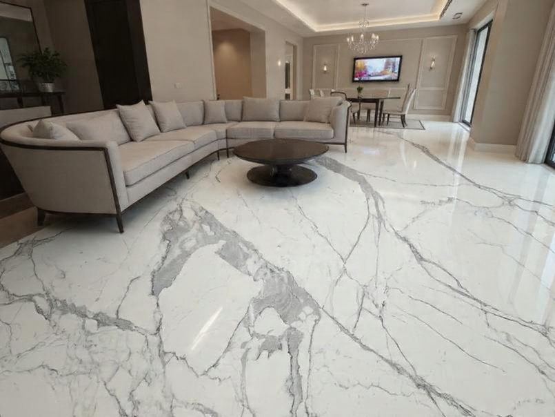 Another Italian work of art from the same region is Calacatta White Marble. Calacatta marble is famous for its thick and strong veins, which at times include gold and grey. The background color is pure white, and the veins are more artistic and dramatic compared to other marbles. The texture is dense and smooth, and it polishes to a high shine. Calacatta marble has been used in European palaces and churches in the past because of its royal appearance. In mandirs, Calacatta marble gives a majestic and royal appearance, especially when used for flooring and wall cladding. In interior home design, it makes a bold statement and is often used in large living spaces where its natural beauty can be fully appreciated.