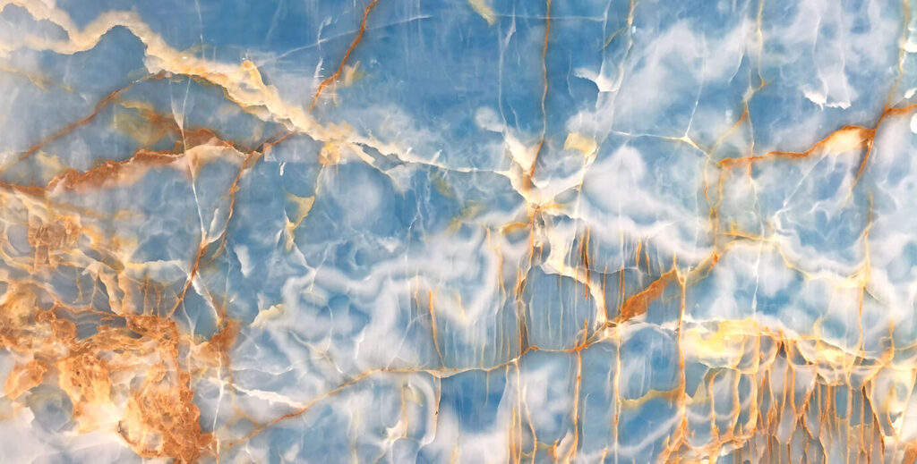 Blue Onyx is prized for its semi-transparent quality and vibrant color. Perfect for backlit panels and luxury décor.
