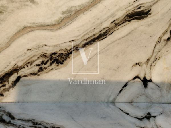 The defining feature of Agariya Albeta Marble is its creamy white base interspersed with striking, flowing veins of earthy browns, smoky greys, and hints of gold. This natural movement across the slab resembles brush strokes on a canvas, making every piece truly unique. The intricate veining adds a sense of fluidity and depth, providing both contrast and sophistication.